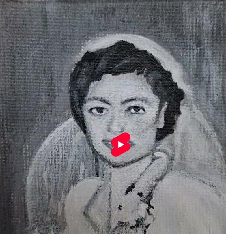 Hoe mooi is het om een portret te maken van je moeder in haar jonge jaren. Zo’n blij gezicht, gehuld in een witte sluier, vol verwachting van een nieuwe stap in haar leven. Een uniek moment leesbaar op het gezicht, wat Melissa (dinsdagavond) nu aan het vastleggen is op een heel klein doekje… als ik zo een schatting kan maken, denk ik 5×5 cm. Ik zie een serie aankomen, nu nog kijken of Melissa het hier mee eens is. Voor nu geniet van het filmpje.